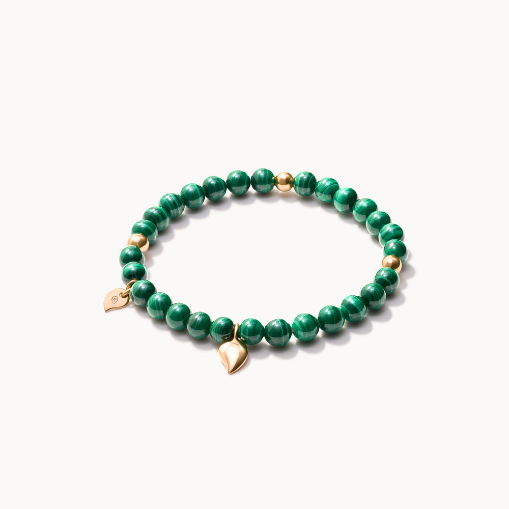 INDIA Medium Bracelet with 18K Gold Beads and Malachite, One Row