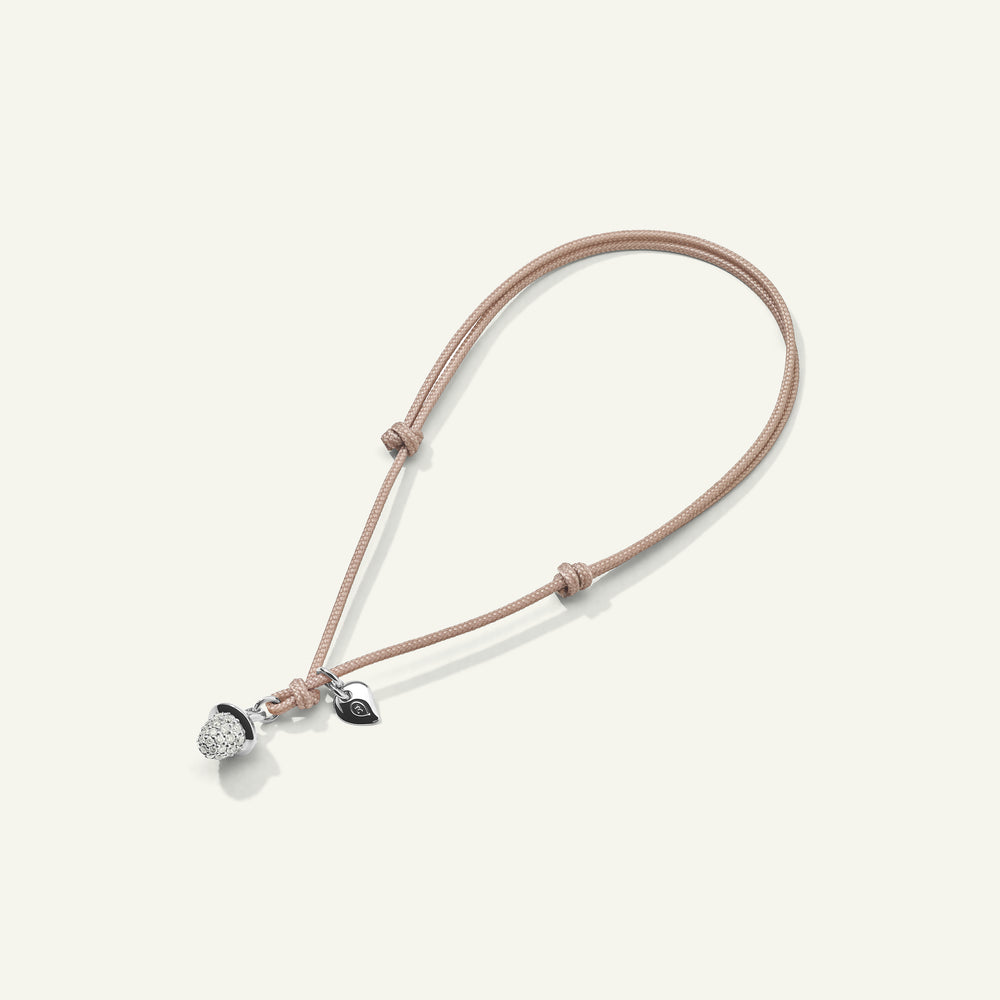 The myMIKADO Bracelet with Diamond Pavé features a petite, sparkling acorn-shaped charm that catches the light, alongside a water drop charm in 18K gold, all set on a durable waterproof nylon cord. Elegant and refined, it adds a touch of shine to everyday looks and makes a thoughtful gift for someone special.