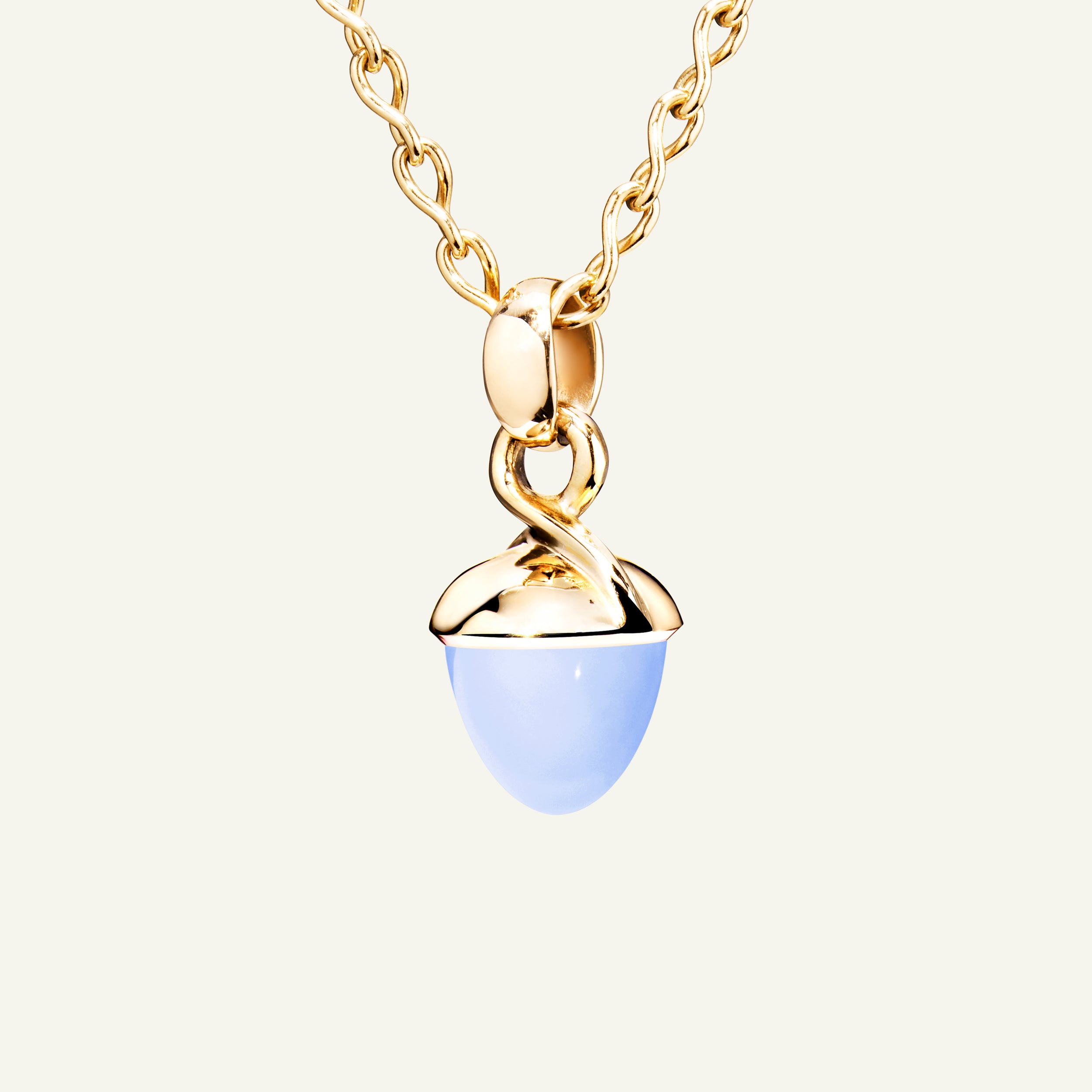 The iconic MIKADO Bouquet Pendant with blue Chalcedony features a soft blue gemstone in the signature acorn shape, set in 18K gold. Designed to be worn your way, MIKADO Bouquet Pendants can be threaded onto a delicate choker-style chain, knotted onto a leather cord with other MIKADO pendants, and effortlessly integrated across the entire TAMARA COMOLLI collection. Ideal for mix & match styling, collecting, and gifting.
