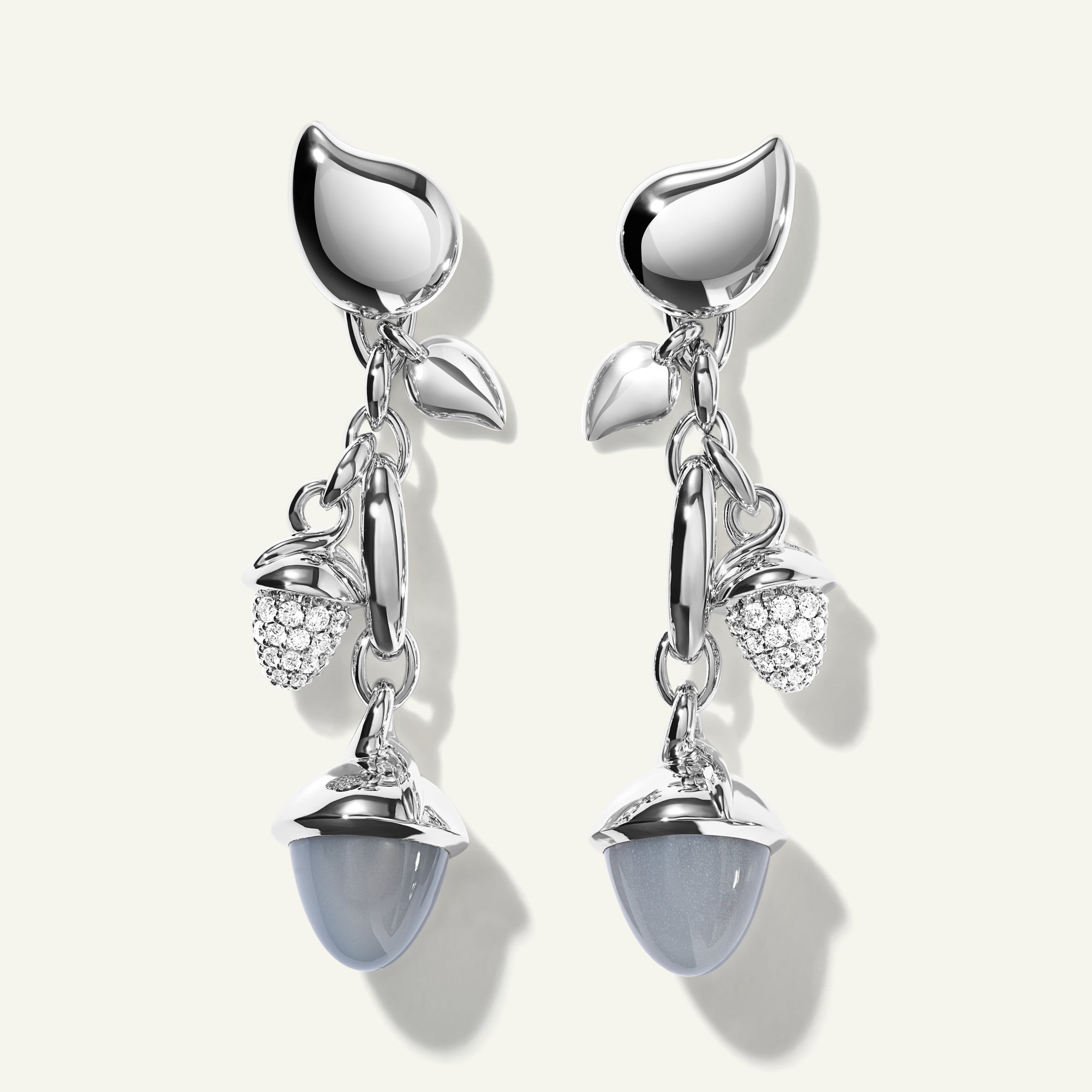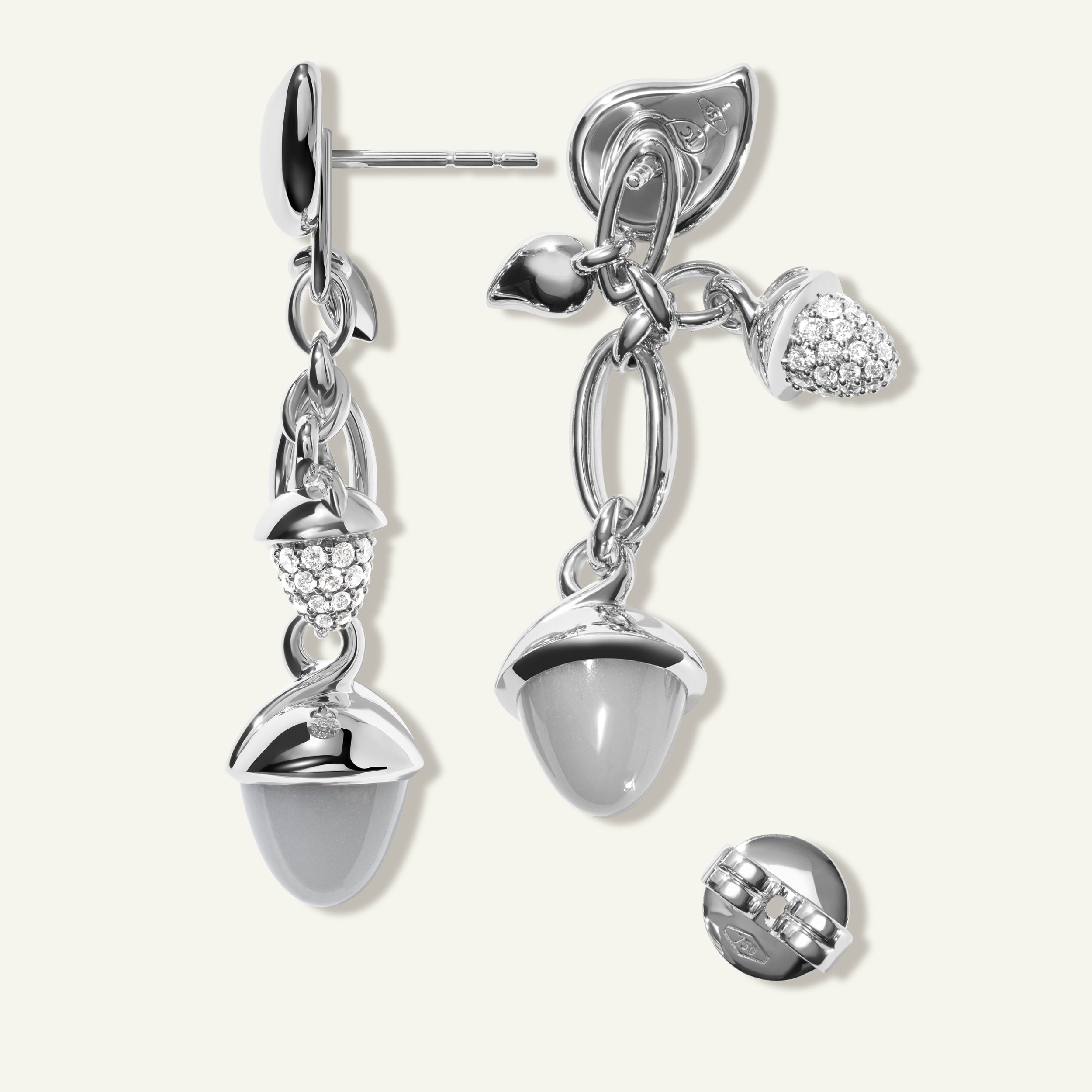 Celebrate individuality with the MIKADO Dangling 2 Acorn Earrings, designed to be worn as elegant drops, refined studs, or as pendants on a chain. Handcrafted in 18K gold, the design’s water drop accents add a signature touch. The serene ‘Cashmere’ Color Story pairs luminous moonstones in soft neutral tones with Diamond Pavé for a look that feels graceful and effortlessly chic.