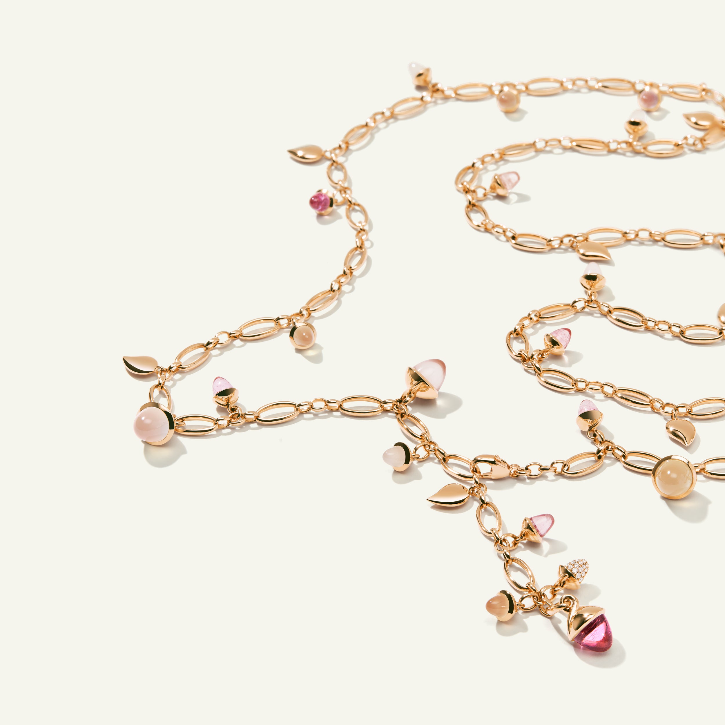 Make a statement with the MIKADO Necklace in ‘Blush,’ offering versatile styling options to suit any occasion. A cascade of pink, sand, and white gemstones shimmers on a handcrafted 18K gold chain. Accented with Diamond Pavé and water drop details for a touch of brilliance. Elegant enough for evening, effortless enough for every day.
