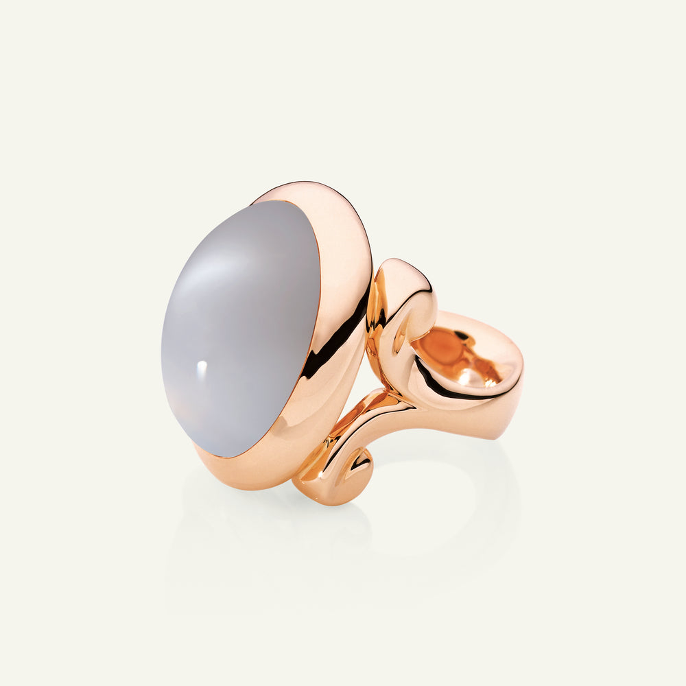 The HIPPIE GLAM Large Ring features a smooth cabochon grey Moonstone set in 18K gold. Its organic shape brings laid-back elegance to everyday wear. This versatile ring layers beautifully or makes a modern statement on its own.