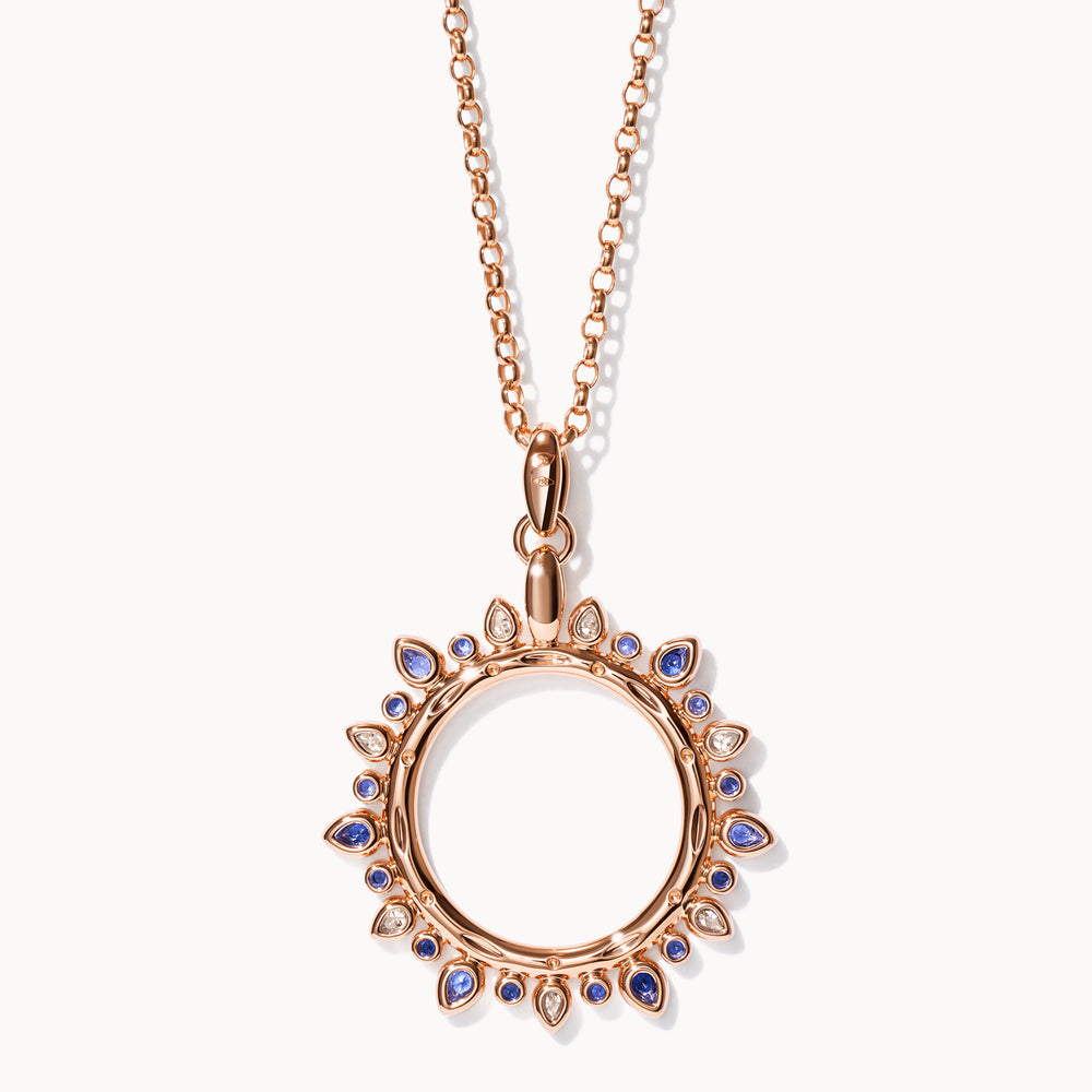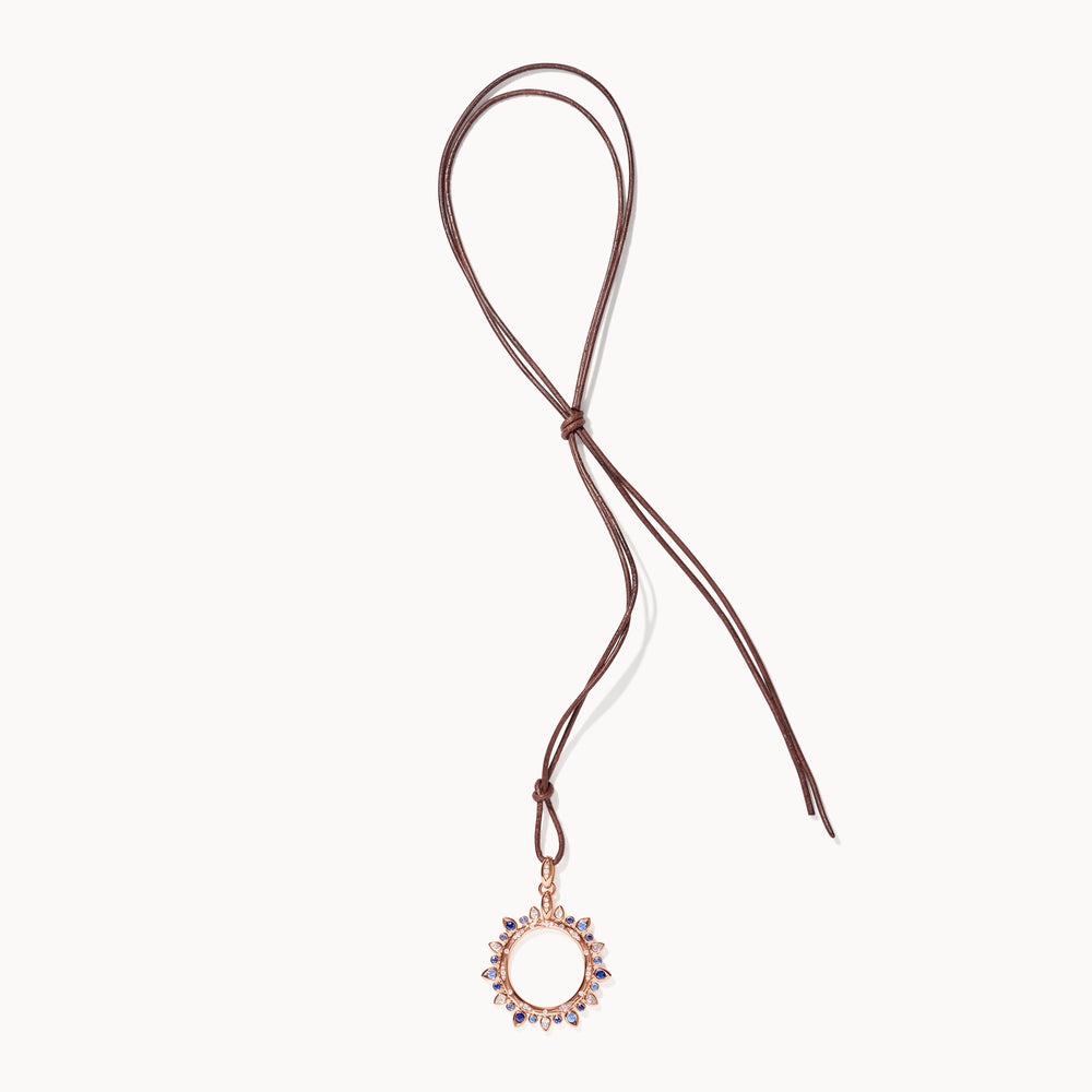 Als besonderes Lieblingsstück der Designerin verkörpert der GYPSY Anhänger Ocean Sun in 18 Karat Weissgold die pure Lebensfreude unserer Marke. Als Symbol für Glückseligkeit und Positivität wird die Sonne spielerisch-elegant in Szene gesetzt. Die farbenfrohen blauen Saphire und funkelnden Diamanten strahlen „casual“ an einem Lederband oder klassisch an einer zarten Goldkette getragen.