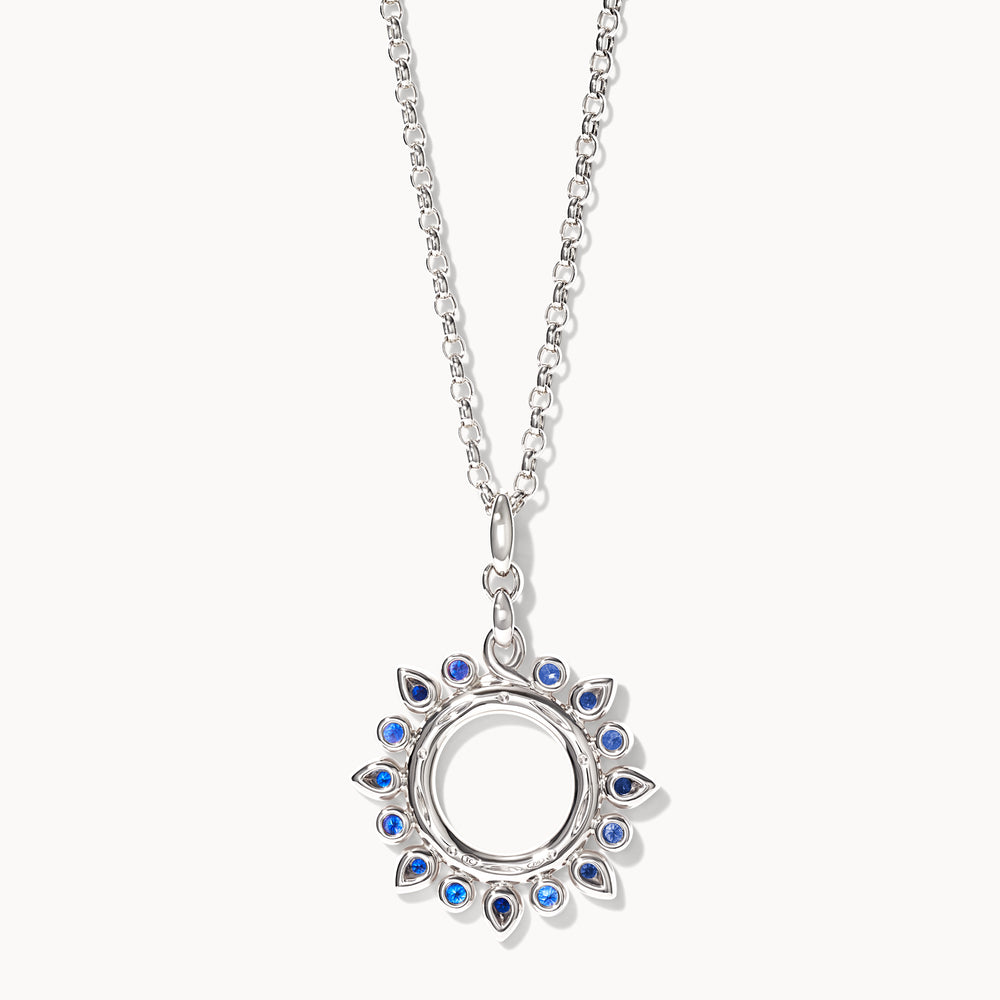 Als besonderes Lieblingsstück der Designerin verkörpert der GYPSY Anhänger Ocean Sun in 18 Karat Weissgold die pure Lebensfreude unserer Marke. Als Symbol für Glückseligkeit und Positivität wird die Sonne spielerisch-elegant in Szene gesetzt. Die farbenfrohen blauen Saphire und funkelnden Diamanten strahlen „casual“ an einem Lederband oder klassisch an einer zarten Goldkette getragen.