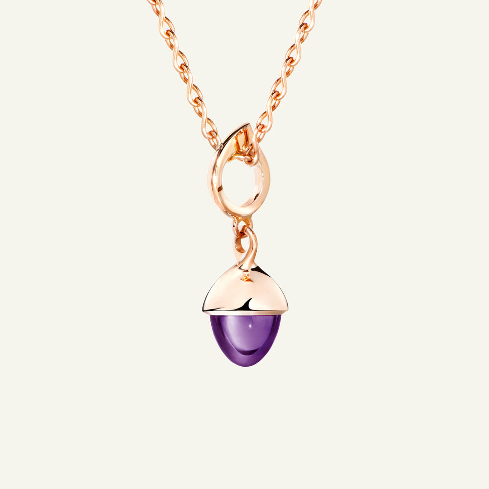 Der ikonische MIKADO Flamenco Anhänger präsentiert einen leuchtend violetten Amethyst, der an einem zarten Wassertropfen-Element in 18 Karat Gold hängt. Sein elegantes, zeitloses Design verleiht jeder Schmucksammlung eine besondere Note. Ideal zum Mix & Match, Sammeln und Verschenken.