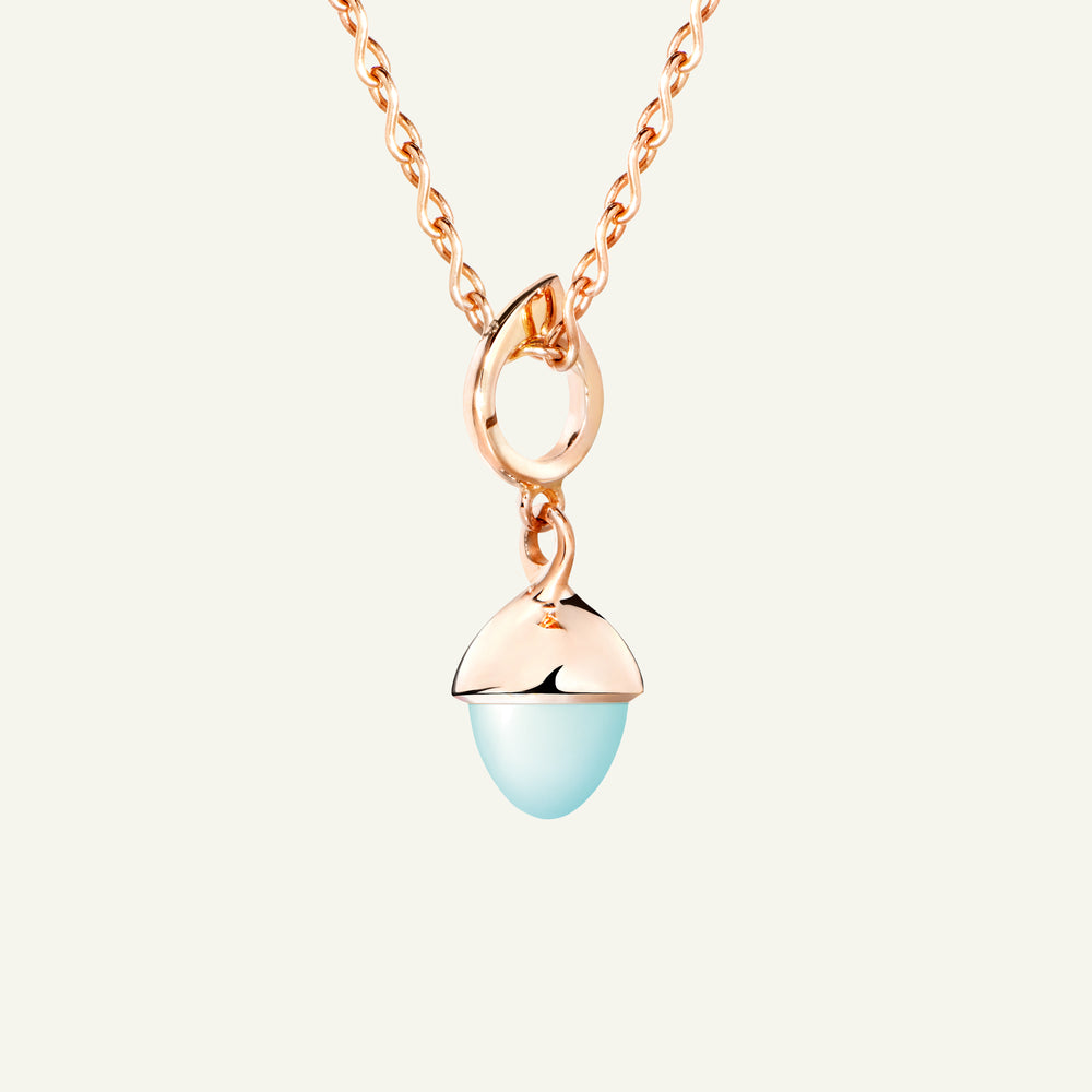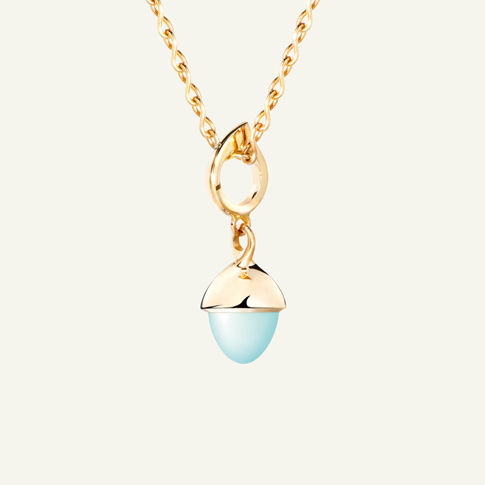 Der ikonische MIKADO Flamenco Anhänger präsentiert einen blau-grünen Aqua Chalcedon, der an einem zarten Wassertropfen-Element in 18 Karat Gold hängt. Sein elegantes, zeitloses Design verleiht jeder Schmucksammlung eine besondere Note. Ideal zum Mix & Match, Sammeln und Verschenken.