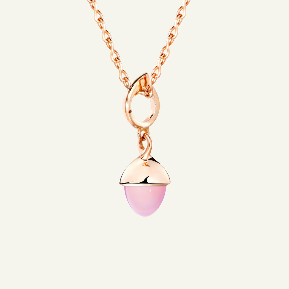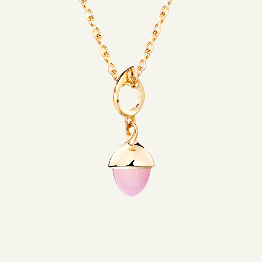 Der ikonische MIKADO Flamenco Anhänger präsentiert einen zarten rosaroten Chalcedon, der an einem zarten Wassertropfen-Element in 18 Karat Gold hängt. Sein elegantes, zeitloses Design verleiht jeder Schmucksammlung eine besondere Note. Ideal zum Mix & Match, Sammeln und Verschenken.