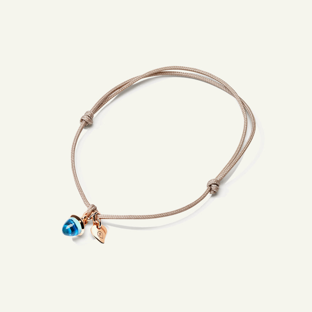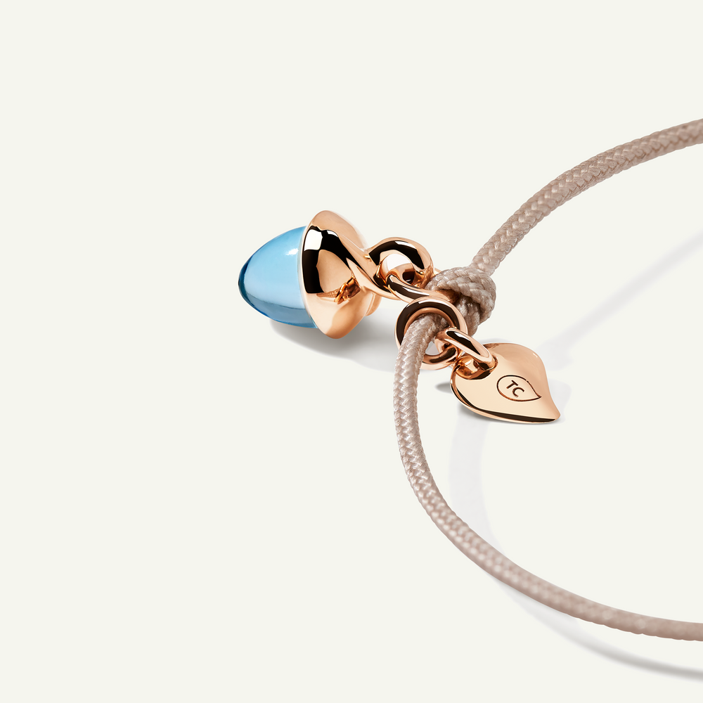 Das myMIKADO Armband vereint einen zarten, hellblauen, kegelförmigen Swiss Topas, der an einen klaren Himmel erinnert, mit einem Wassertropfen-Anhänger aus 18K Gold an einem strapazierfähigen, wasserfesten Nylonband. Lässig und zugleich raffiniert setzt es einen eleganten Farbakzent – und eignet sich ebenso als besonderes Geschenk für einen geliebten Menschen.