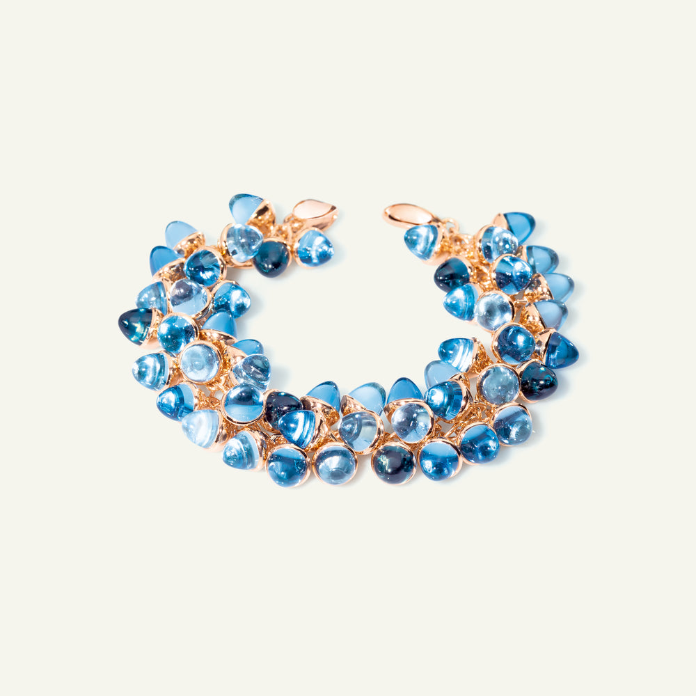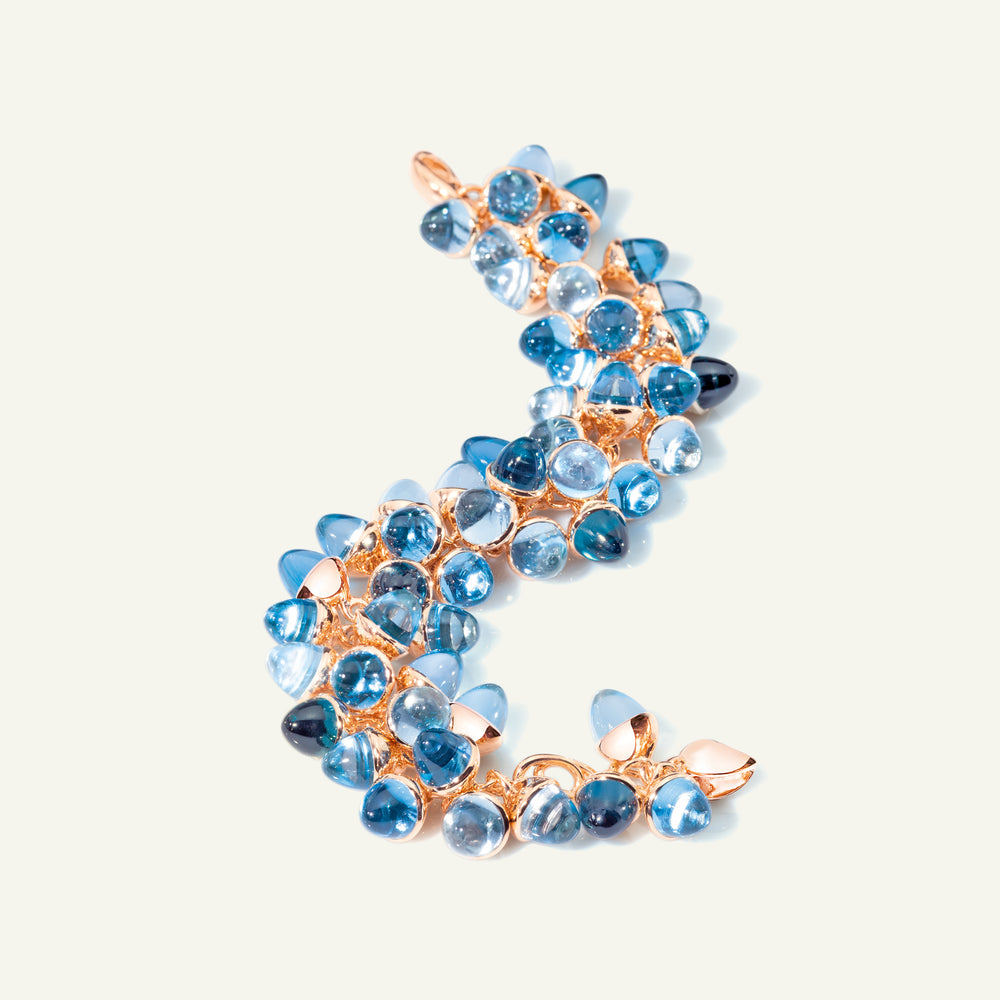 Tauchen Sie ein in eine Welt voller zeitloser Eleganz: Das ikonische MIKADO Flamenco Armband fängt mit 51 kegelförmigen Edelsteinen die Leidenschaft und Energie des Flamenco-Tanzes ein. In aufwendiger Handarbeit aus 18 Karat Gold gefertigt, strahlt die Color Story 'Sky' in luftigen Blautönen, die an den endlosen Horizont erinnern. Ein anmutiges Design, das fließende Bewegung und zeitlose Eleganz in deinen Look bringt.