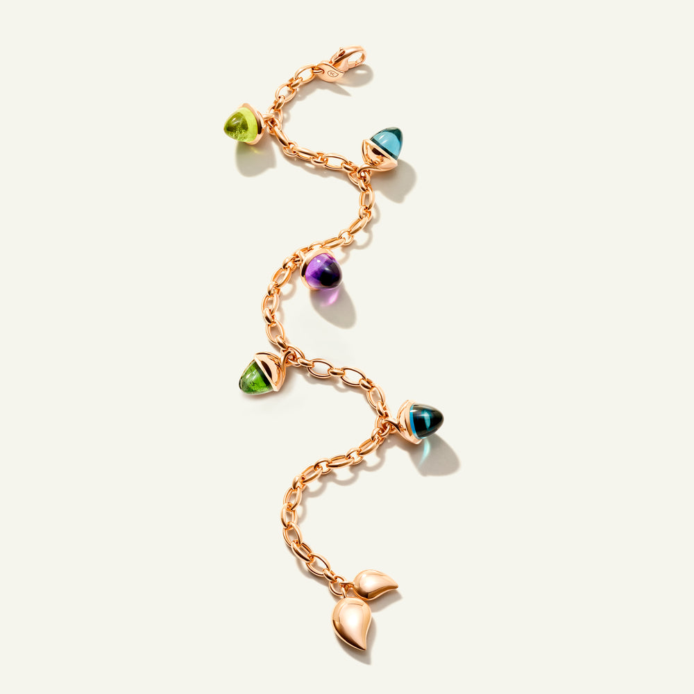 Tauchen Sie ein in eine Welt strahlender Schönheit mit dem MIKADO Flamenco Charm Bracelet in der Color Story 'Aurora' – ein leuchtendes Farbenspiel der Natur. Fünf kegelförmige Edelsteine und zarte Wassertropfen-Elemente, inspiriert von der Leidenschaft und Energie des Flamenco-Tanzes, funkeln an einer handgefertigten 18K-Goldkette. Ein Design, das jedem Look Saison für Saison einen Hauch von Eleganz verleiht.
