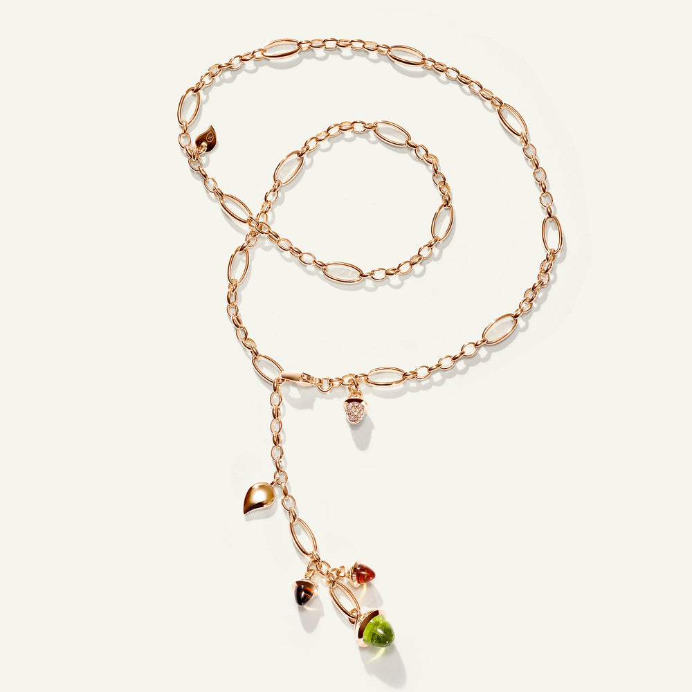 Die MIKADO Delicate Halskette in 'Indian Summer' vereint kegelförmige Anhänger in warmen Grün-, Rot- und Orangetönen. Zarte Wassertropfen-Details und ein funkelnder Diamond Pavé Anhänger vollenden die handgefertigte Kette aus 18 Karat Gold. Durch ihre variable Länge ist sie ein vielseitiges Schmuckstück für jeden Anlass.