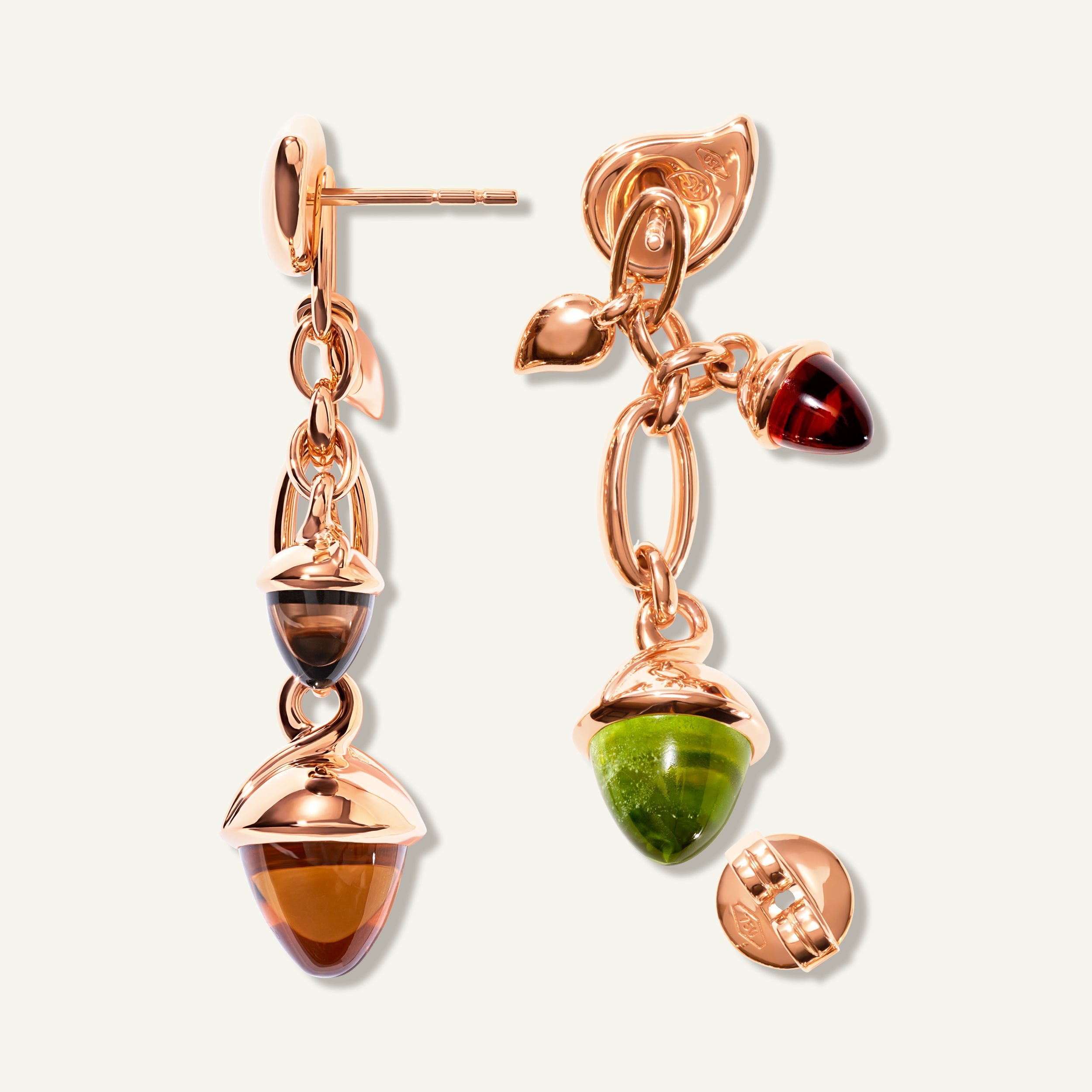 Eine Hommage an die Individualität: Die MIKADO Dangling 2 Acorn Ohrringe lassen sich wahlweise als elegante Hänger, stilvolle Stecker oder als Anhänger an einer Kette tragen. In aufwendiger Handarbeit aus 18 Karat Gold gefertigt, verleihen die charakteristischen Wassertropfen-Details dem Design eine unverwechselbare Signatur. Die leuchtende Color Story 'Indian Summer' kombiniert satte Grün-, Rot- und Orangetöne zu einem Look, der warm, kräftig und gleichzeitig mühelos schick wirkt.
