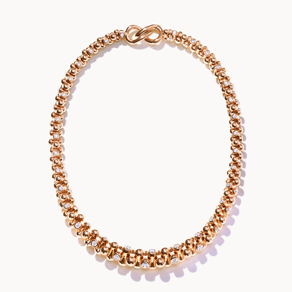 Das begehrte Schmuckstück, unsere unglaubliche ALWAYS DIAMONDS Halskette, wurde sorgfältig mit einer graduellen Silhouette entworfen, um sich anmutig über den Hals zu legen. Mit Diamanten, die in dem strahlenden Gold Ihrer Wahl gesetzt sind, präsentiert diese brillante Halskette einen Doppel-Tropfenverschluss, ein schönes 'Unendlichkeits'-Detail, das den Gesamtlook abrundet. Entworfen, um alleine oder mit dem ALWAYS DIAMONDS Armband getragen zu werden.