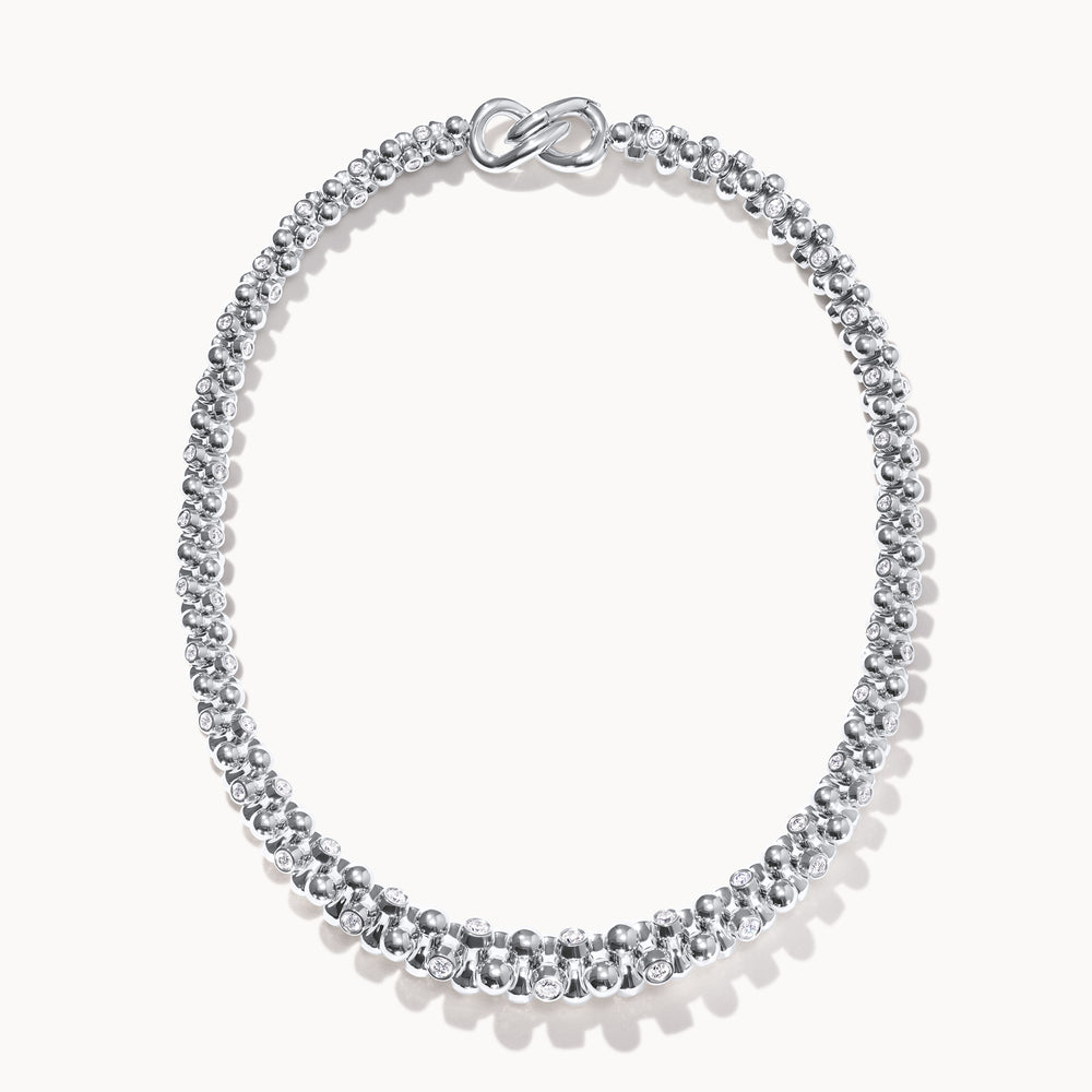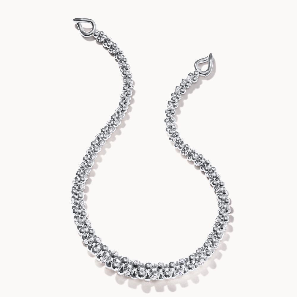 Das begehrte Schmuckstück, unsere unglaubliche ALWAYS DIAMONDS Halskette, wurde sorgfältig mit einer graduellen Silhouette entworfen, um sich anmutig über den Hals zu legen. Mit Diamanten, die in dem strahlenden Gold Ihrer Wahl gesetzt sind, präsentiert diese brillante Halskette einen Doppel-Tropfenverschluss, ein schönes 'Unendlichkeits'-Detail, das den Gesamtlook abrundet. Entworfen, um alleine oder mit dem ALWAYS DIAMONDS Armband getragen zu werden.