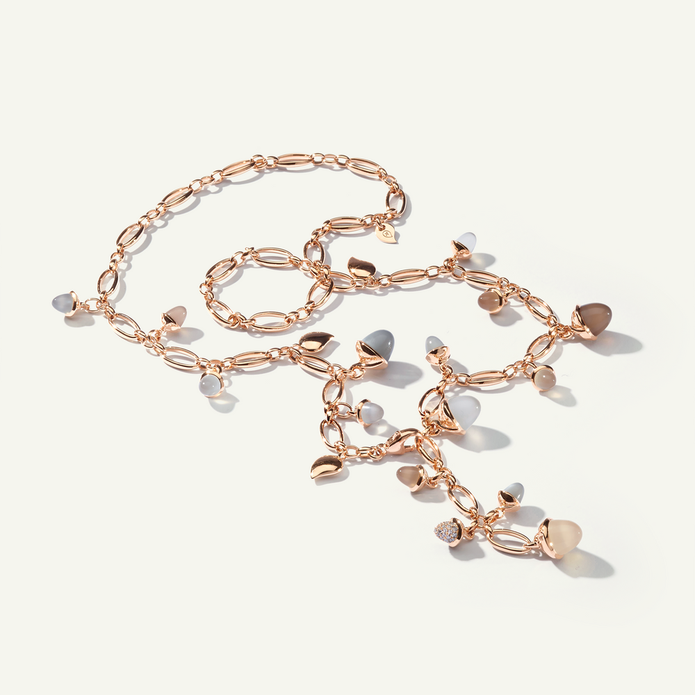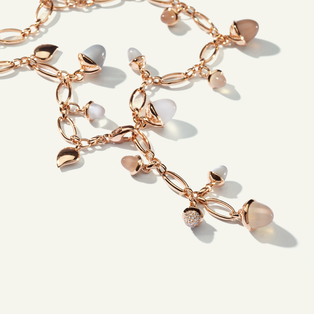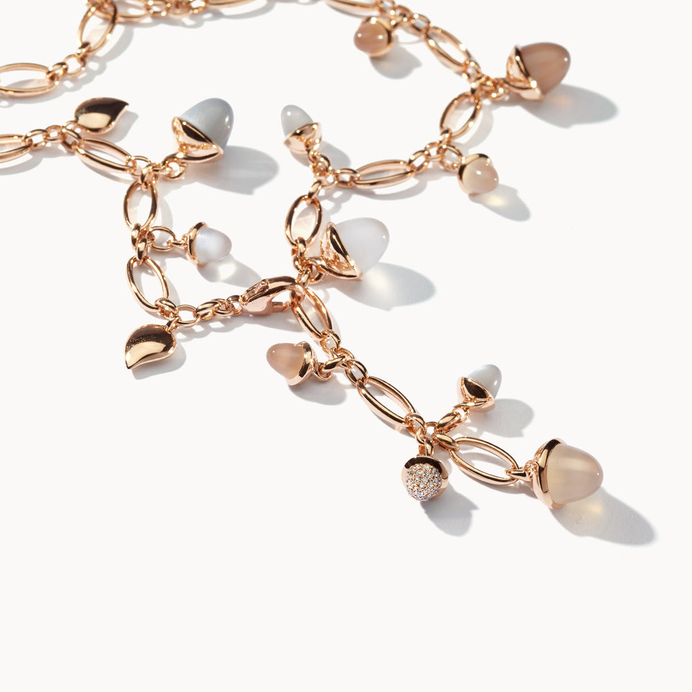 Setzen Sie ein Statement mit der MIKADO Halskette in 'Cashmere', die vielseitige Styling-Möglichkeiten für jeden Anlass bietet. Ein funkelnder Wasserfall aus leuchtenden Mondsteinen in sanften Neutraltönen erstrahlt an einer handgefertigten Kette aus 18 Karat Gold. Akzente aus Diamant Pavé und zarten Wassertropfen verleihen zusätzlichen Glanz. Lässig am Tag, elegant am Abend.