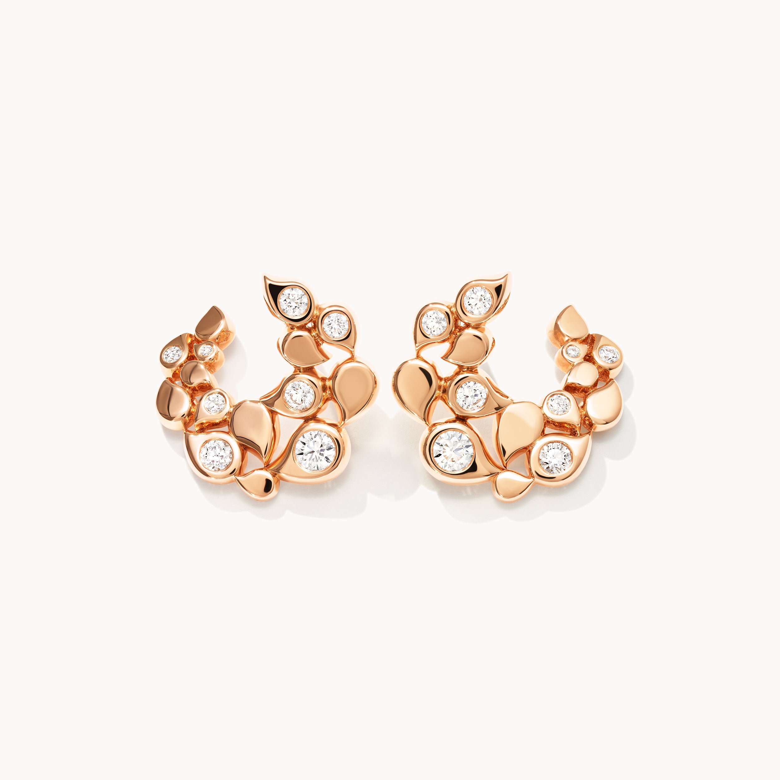 Die romantische SNOWFLAKES-Kollektion verleiht jedem Look mit diesen filigranen Ohrringen Eleganz. Die ikonischen Wassertropfenformen wechseln zwischen der Reinheit von 18 Karat Gelbgold und den mit schimmernden weißen Diamanten besetzten Formen ab. Die gedrehte, moderne Reifform schmiegt sich zart hinter das Ohrläppchen, schließt scheinbar die Rundung in einem schönen Kreis, ohne schwer zu wirken.