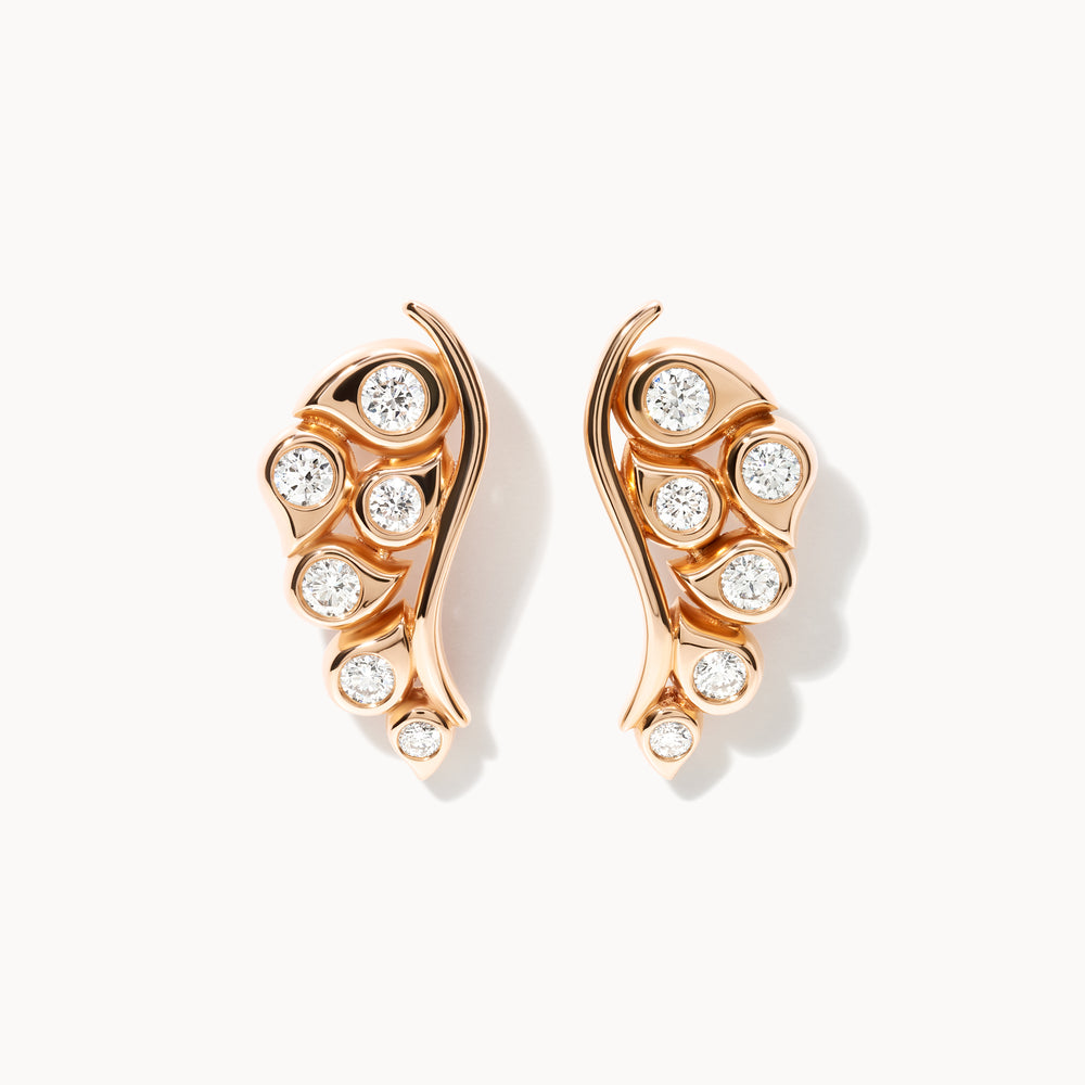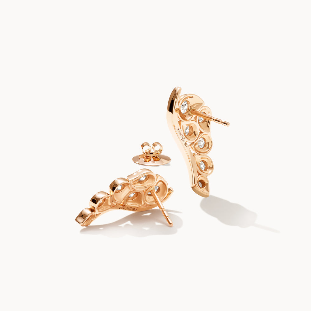 Eine neue Interpretation eines klassischen TAMARA COMOLLI Designs: Diese eleganten Ohrringe betonen die Schönheit der SNOWFLAKES Kollektion in einem vielseitigen, klaren Stil. Ikonische Wassertropfenformen aus 18 Karat Rotgold sind wie kunstvolle Schneeflocken, die auf ein Blatt gefallen sind, aneinandergefügt, während Diamanten anmutig in jedes Stück eingesetzt sind. Diese vielseitigen Ohrringe können als Crawler oder als Tropfen-Ohrstecker getragen werden.