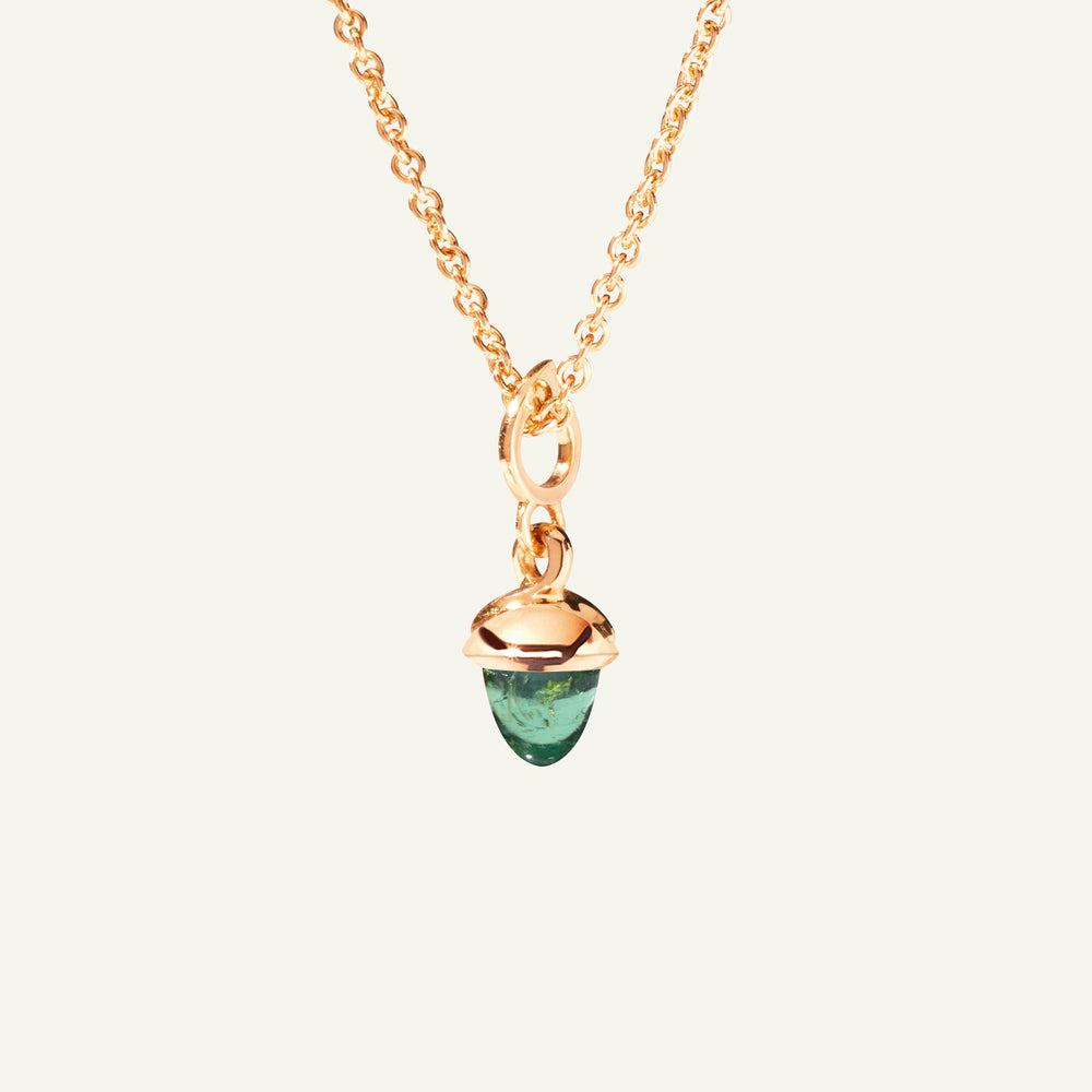 Der miniMIKADO Anhänger präsentiert einen zarten, erdigen grünen Turmalin in der charakteristischen kegelförmigen Form und charmant-zierlicher Größe, gefasst in 18 Karat Gold. Vielseitig tragbar, kann der miniMIKADO Anhänger an einer feinen Kette getragen oder mit weiteren MIKADO Anhängern kombiniert werden. Ideal zum Mix & Match, Sammeln und Verschenken.