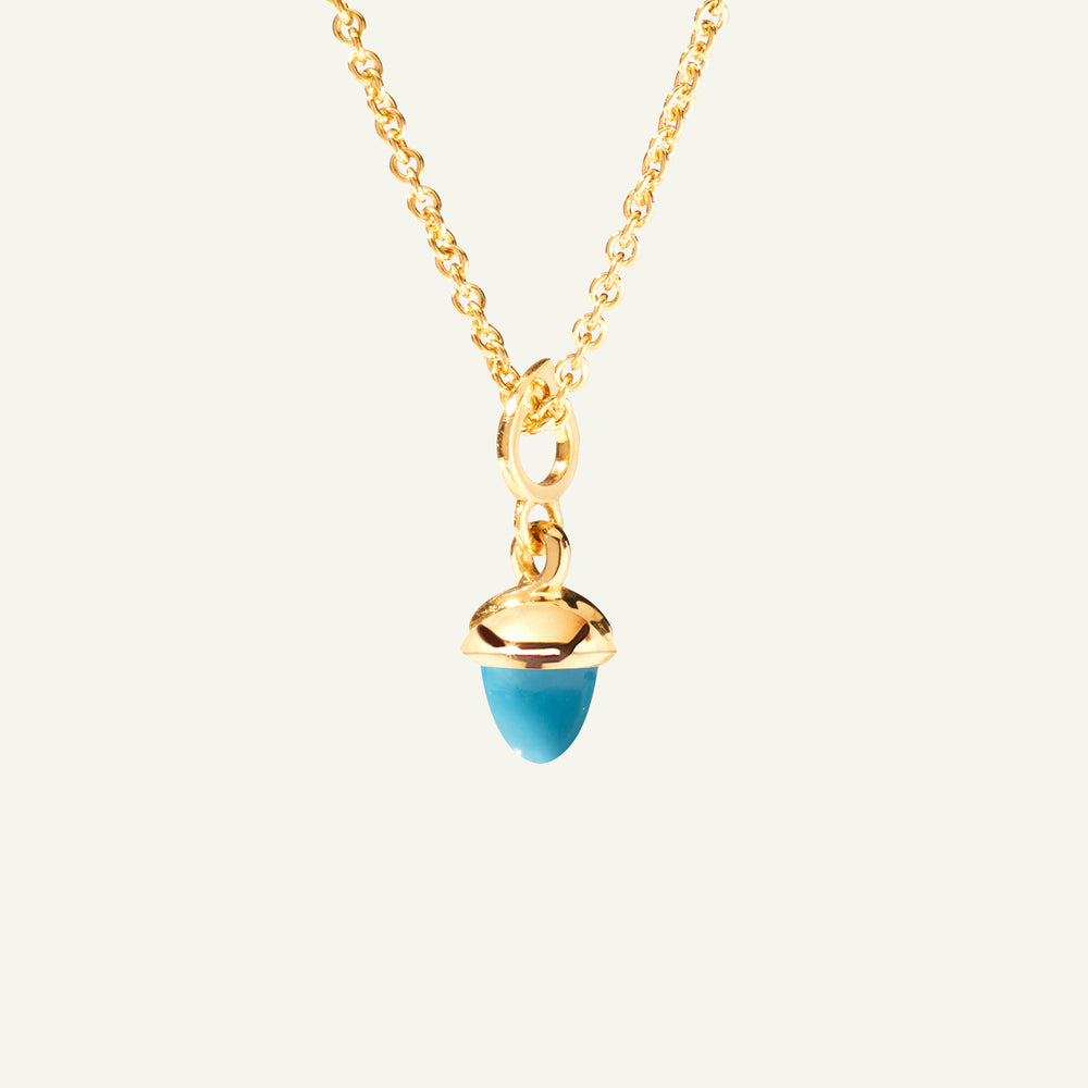Der miniMIKADO Anhänger präsentiert einen zarten, blau-grünen Türkis in der charakteristischen kegelförmigen Form und charmant-zierlicher Größe, gefasst in 18 Karat Gold. Vielseitig tragbar, kann der miniMIKADO Anhänger an einer feinen Kette getragen oder mit weiteren MIKADO Anhängern kombiniert werden. Ideal zum Mix & Match, Sammeln und Verschenken.
