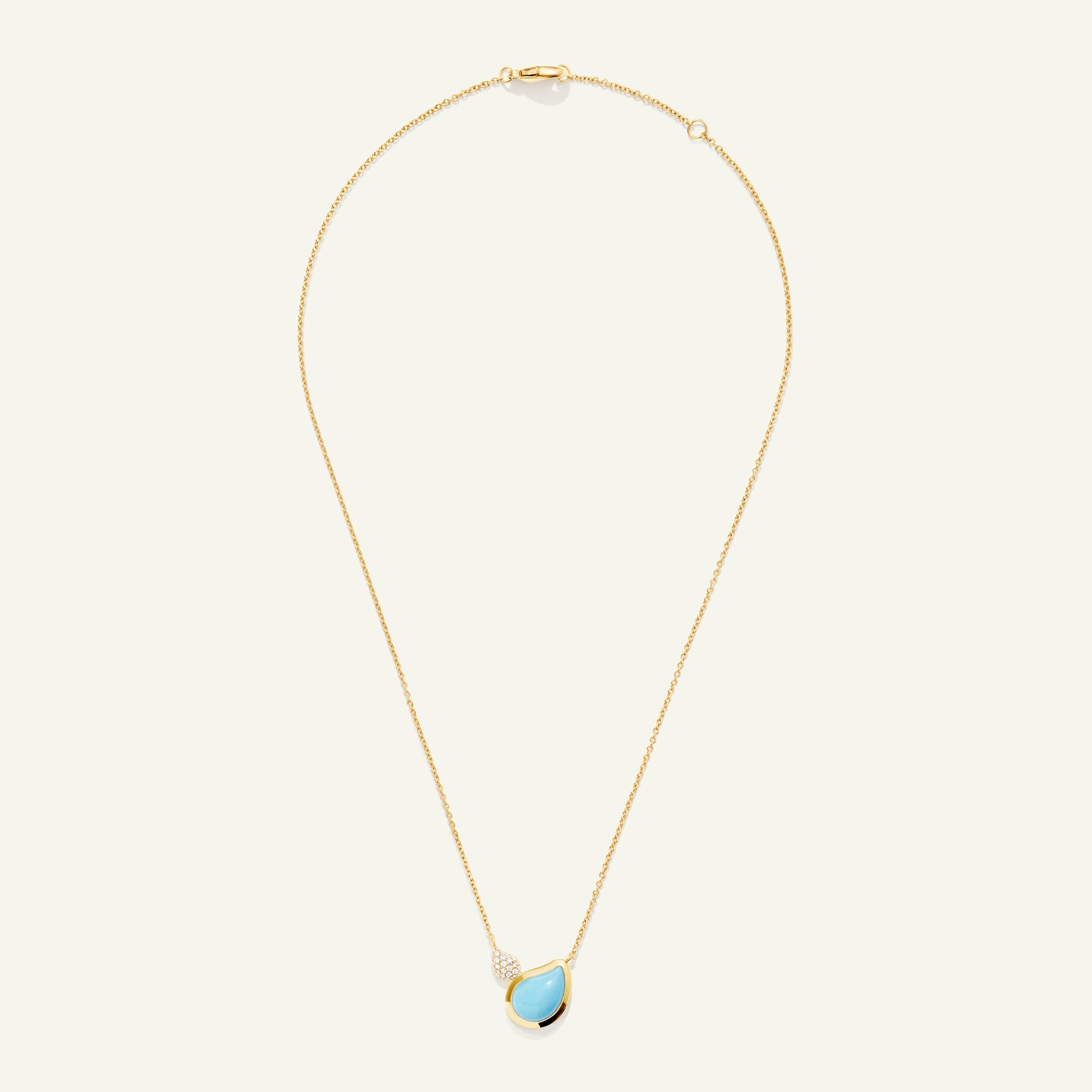 In aufwendiger Handarbeit aus 18 Karat Gold gefertigt, vereint die verspielte und zugleich subtile SIGNATURE 2 Drops Halskette einen zarten Diamant Pavé Drop mit einem größeren Türkis und verleiht einen leuchtend blau-grünen Glanz. Die variabel längenverstellbare Kette macht das Layering innerhalb der gesamten TAMARA COMOLLI Kollektion mühelos. Ein besonderes Schmuckstück, zu dem man immer wieder greift.