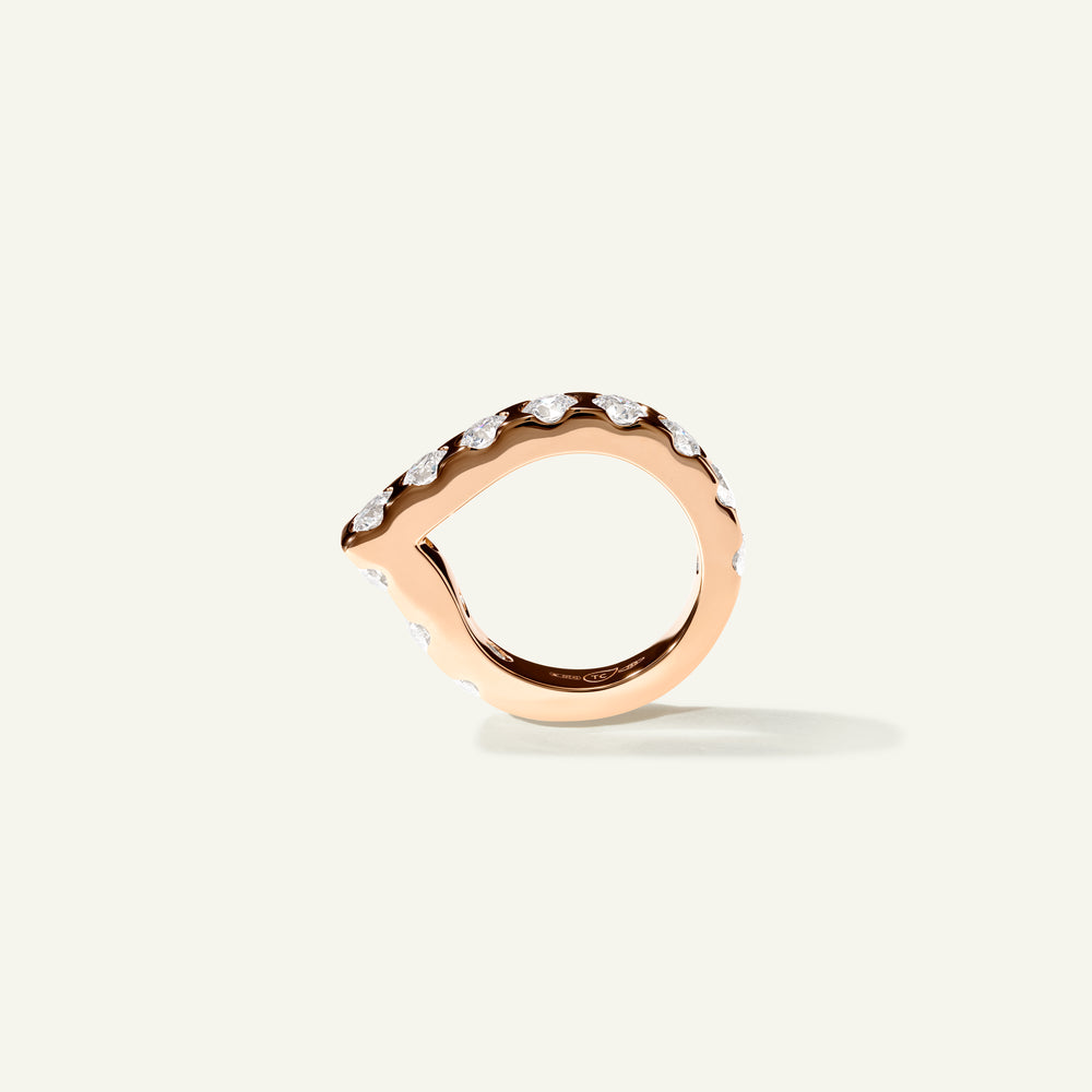 Der SIGNATURE Memoire Drop Ring zeigt die ikonische Wassertropfen-Form in einem modernen Design mit einer Reihe funkelnder weißer Diamanten. Gefasst in 18 Karat Gold, verkörpert er zeitgemäße Eleganz und eignet sich perfekt zum Stacking. Ein stilvoller Begleiter für jeden Tag.